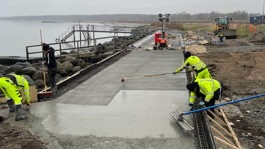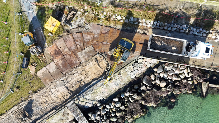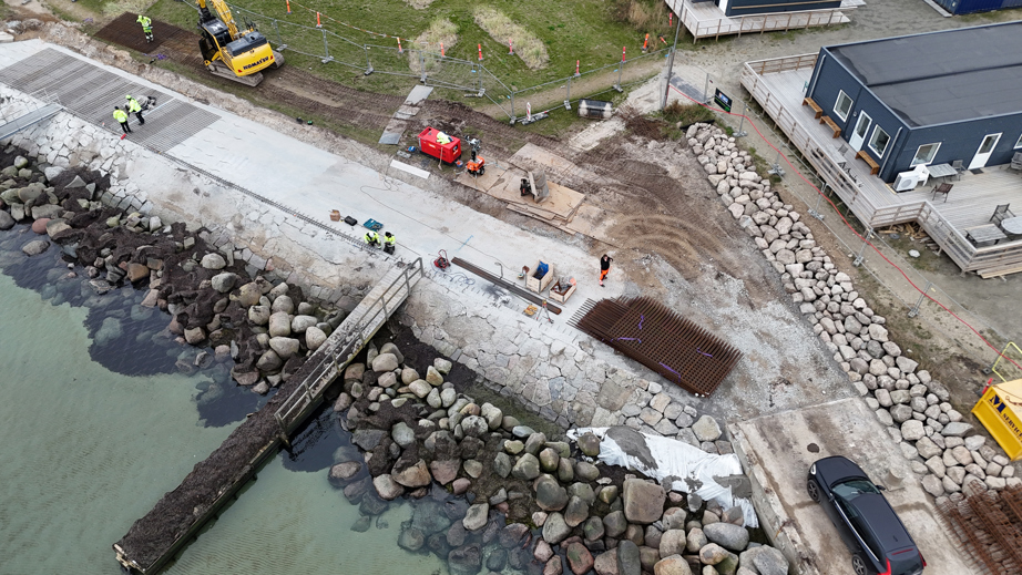Stormfloder i oktober 2023 og januar 2024 medførte alvorlige erosionsskader på den søndre mole ved Den Maritime Halvø, herunder skader på stenglacis, overskylsvægge og promenadedæk.