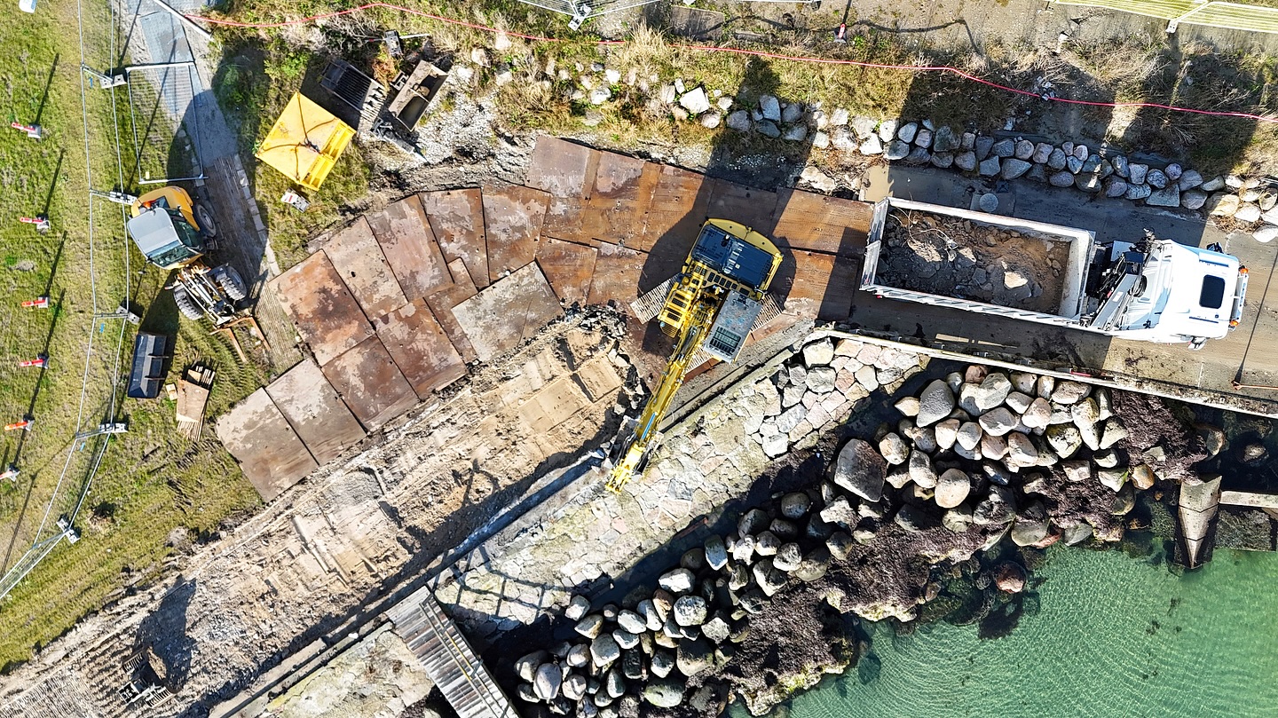 To stormfloder i 2023 og 2024 medførte alvorlige erosionsskader på den søndre mole i Køge, hvor JHH Entreprenør har stået for en omfattende reetablering og kystsikring ved Den Maritime Halvø.