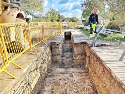 Rydningsarbejder, inkl. fjernelse af belægninger og betonkanaler omkring gamle forsyningsledninger.