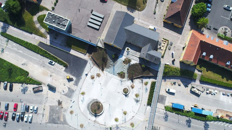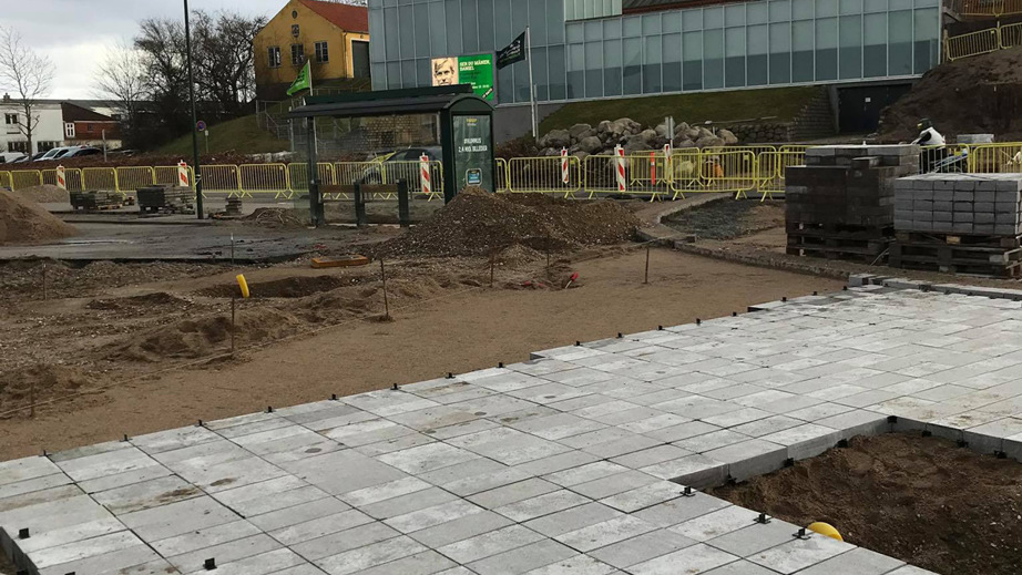 JHH Entreprenør har stået for hovedentreprisen på renovering og ombygning af Axeltorv i Nakskov, hvor torvet er blevet omdannet fra trafik- og parkeringsareal til et levende og inviterende byrum.