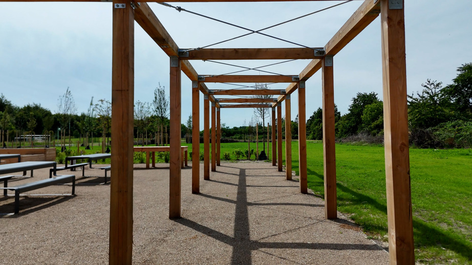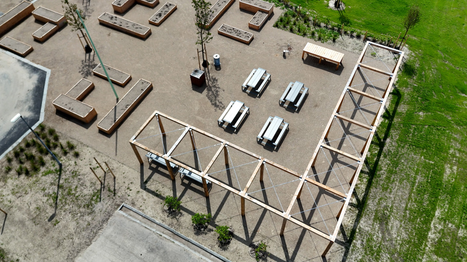 I Nykøbing Falster har projektet Friheden til formål at skabe fælles mødesteder i byernes boligkvarterer . Byrummet er fyldt med aktiviteter for både dem, der søger ro, men også dem, der søger mere fysisk aktivitet.