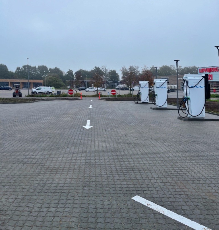 Projektet omfattede opgradering af den eksisterende parkeringsplads med henblik på at etablere en moderne ladepark med kapacitet til seks elektriske ladestandere.